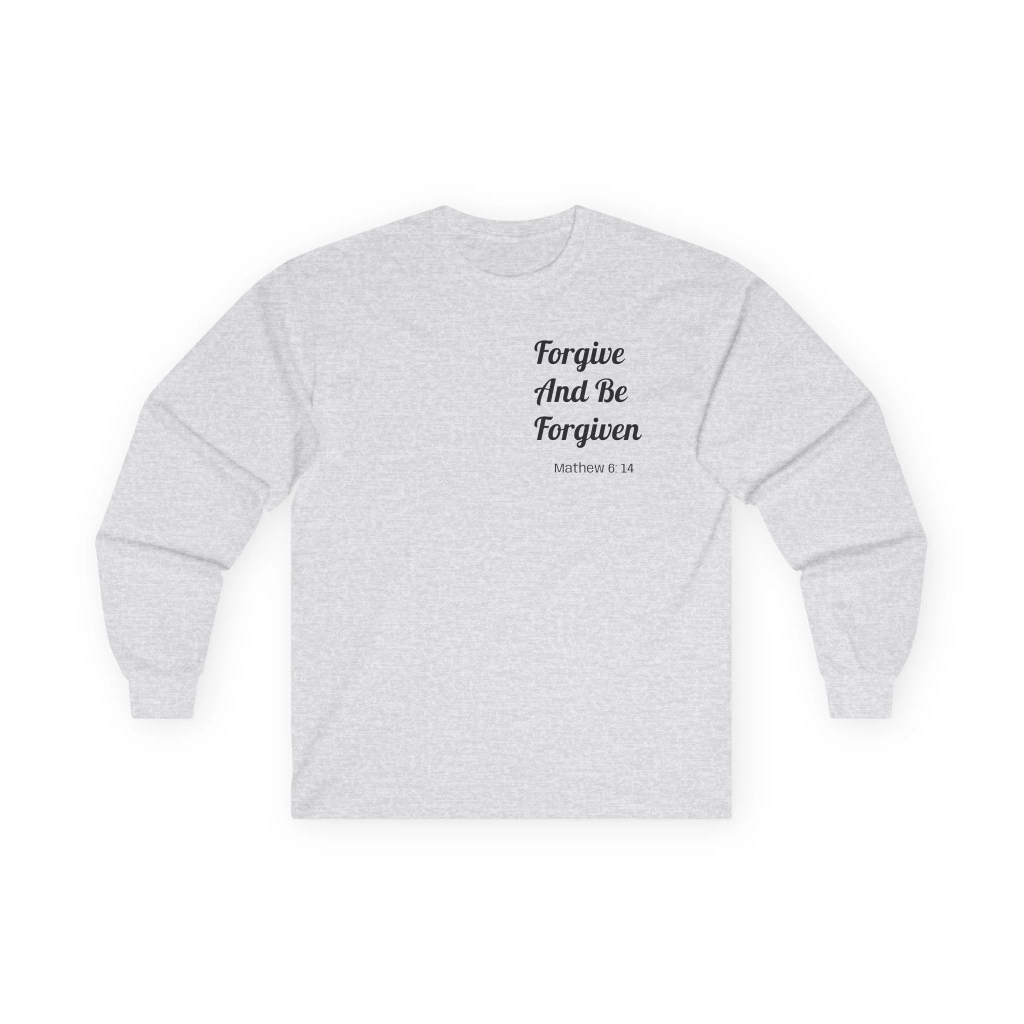 Stay inspired with this Unisex Ultra Cotton Long Sleeve Tee featuring a powerful message based on Mathew 6: 14, "For if you forgive others their trespasses, your heavenly Father will also forgive you". Forgive And Be Forgiven.