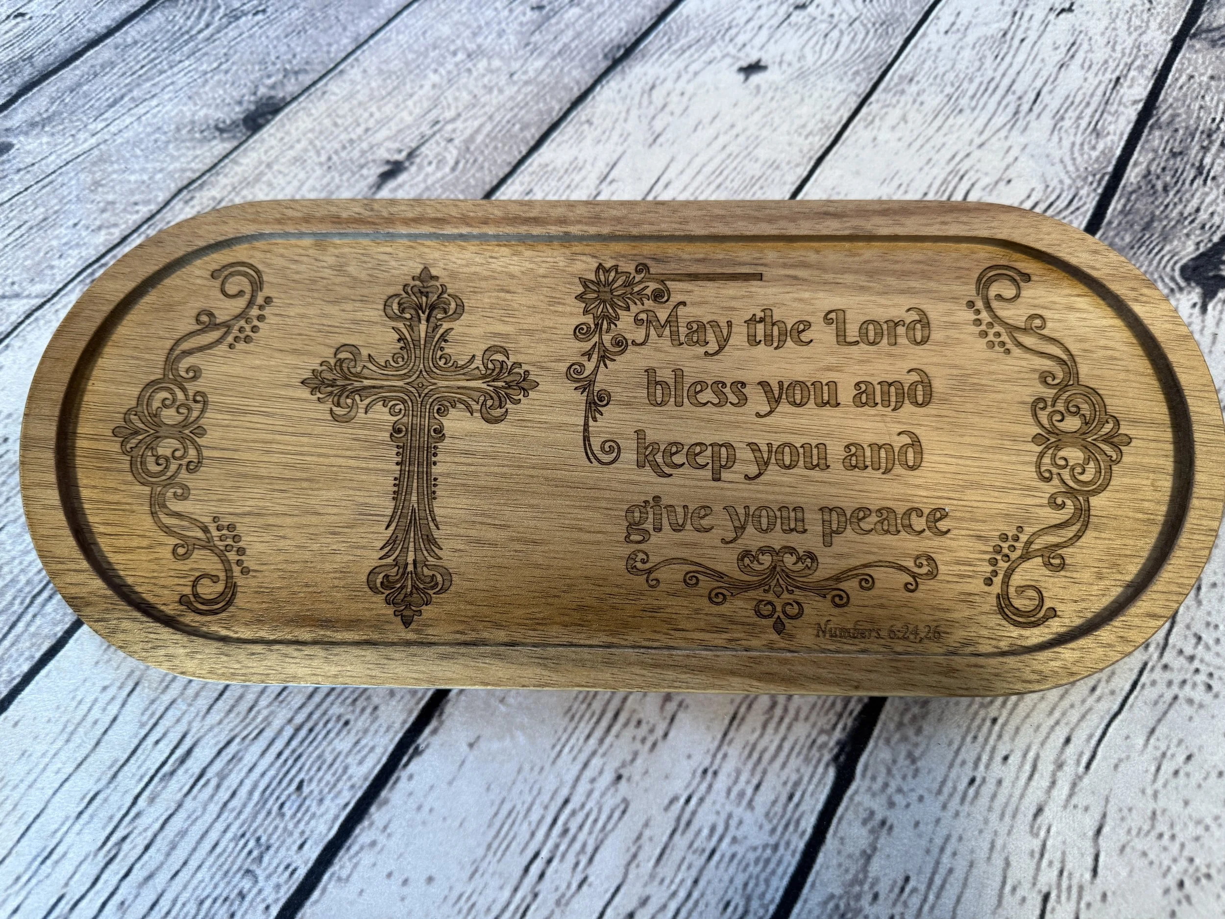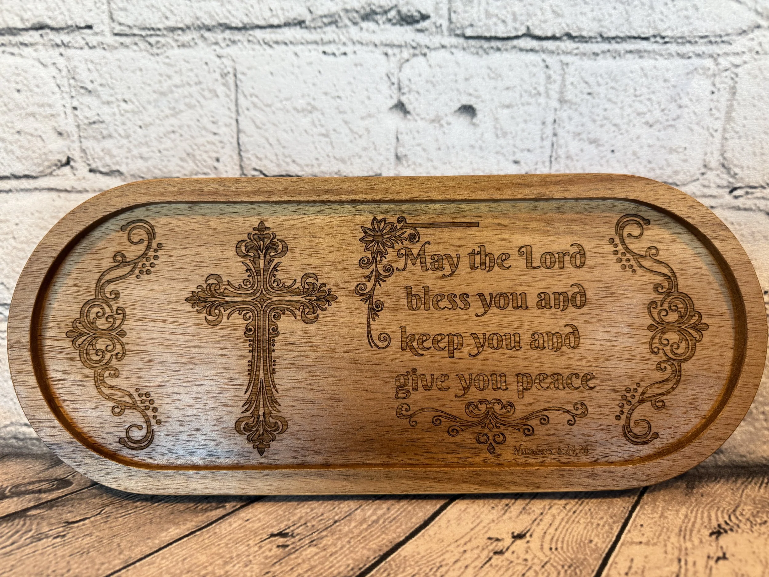 Small Acacia Wod Trays with Jesus is the way, the truth and he Life. engraved on them