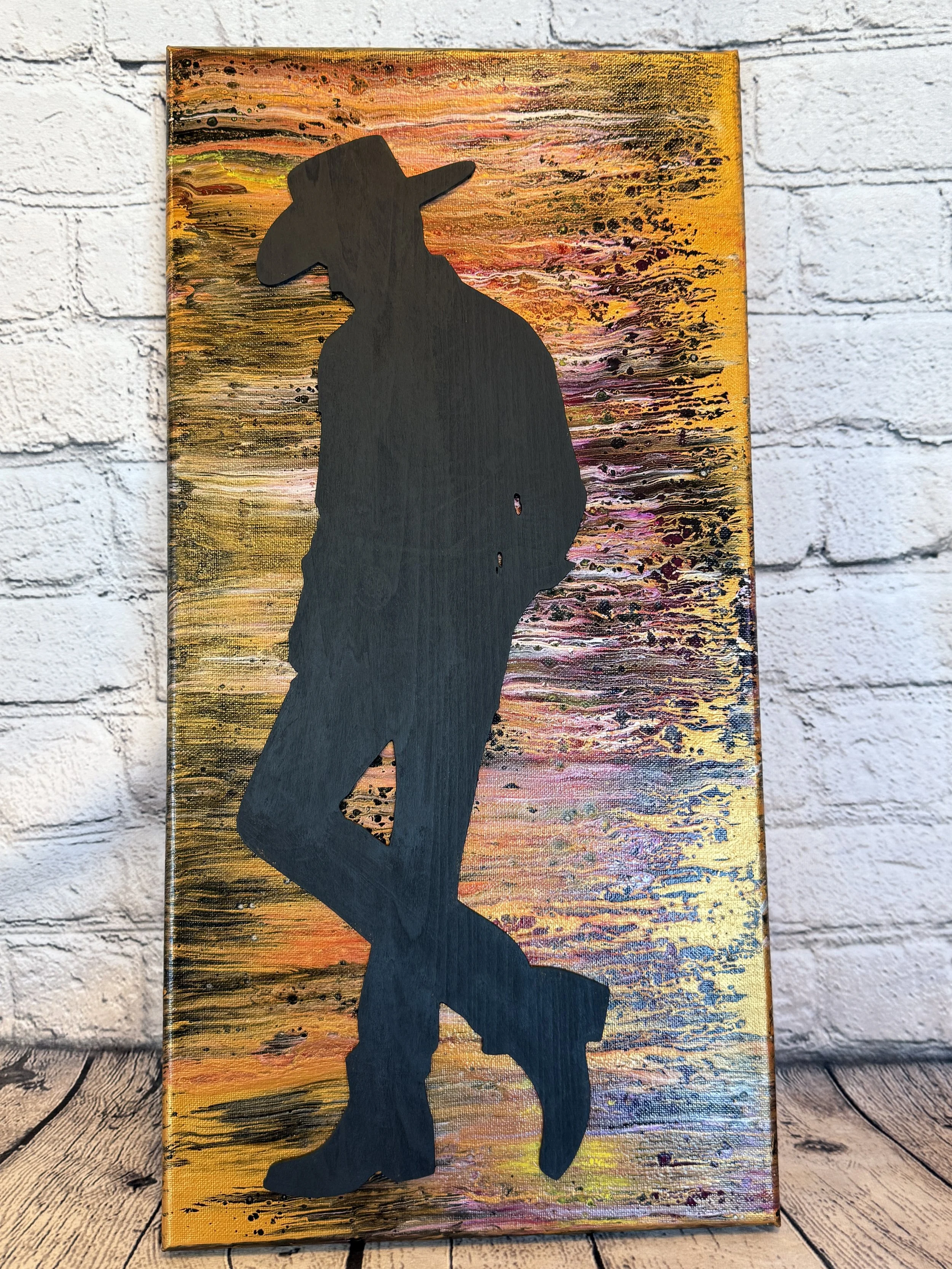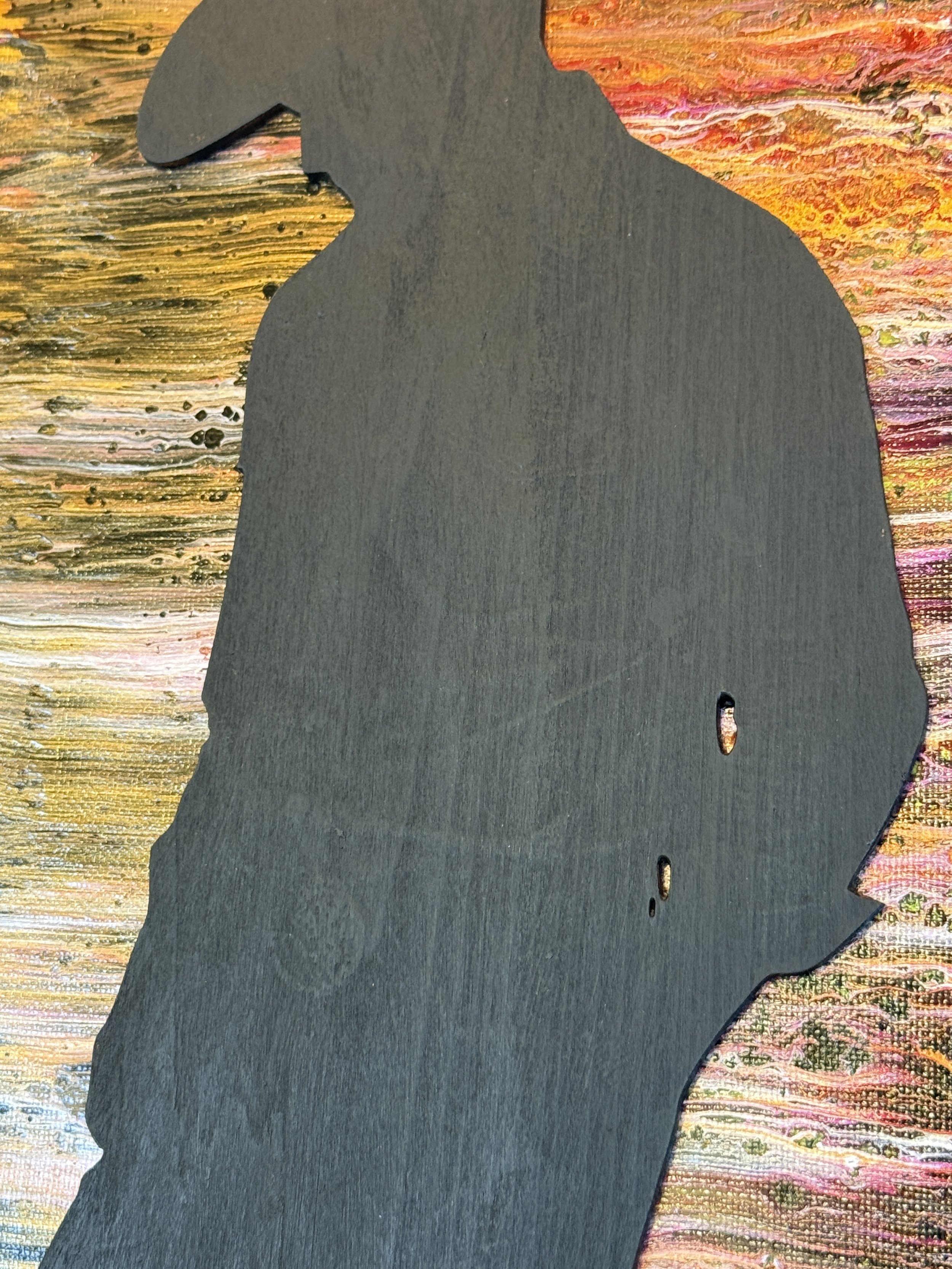 This 14”x 11” x .7 Fluid art painting in blues, white and gold colors with a wood laser cut lighthouse.