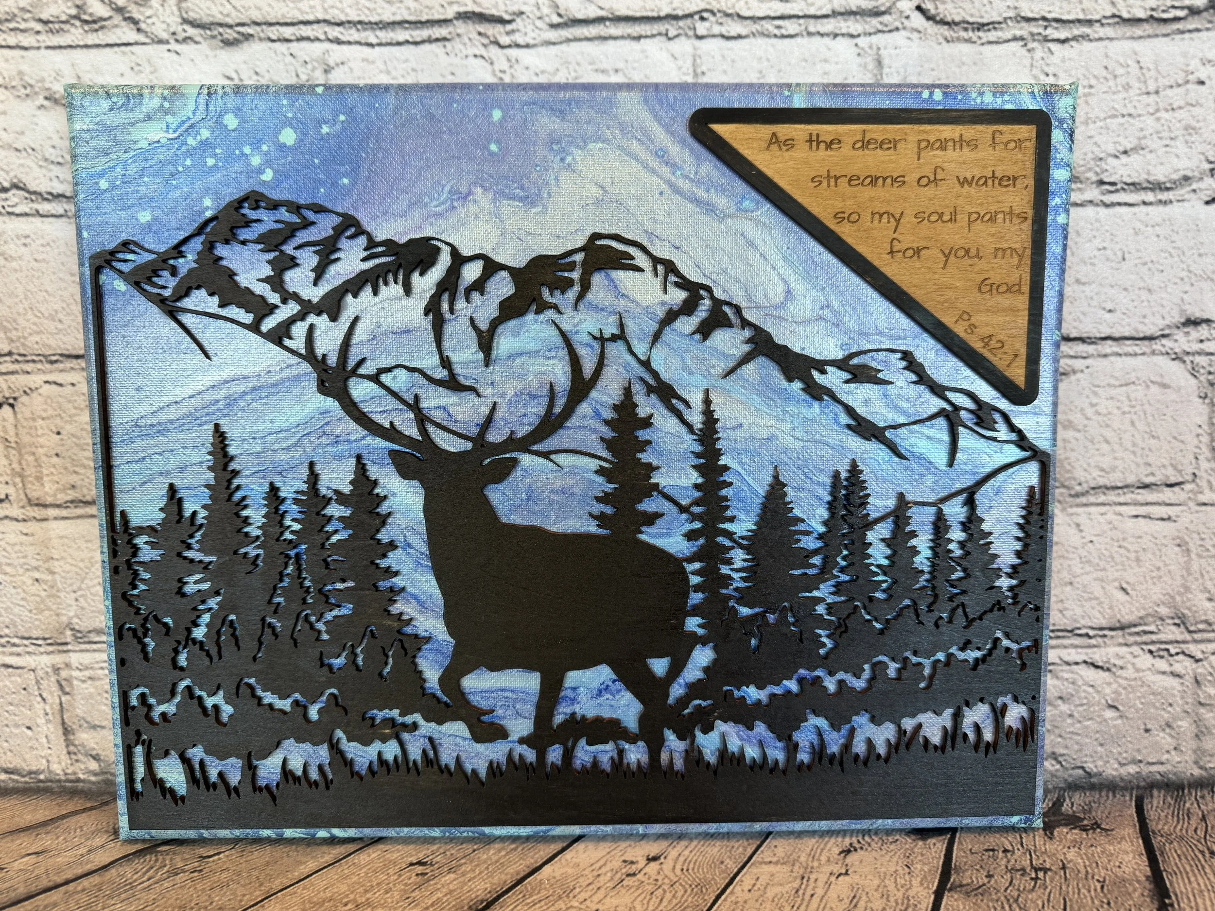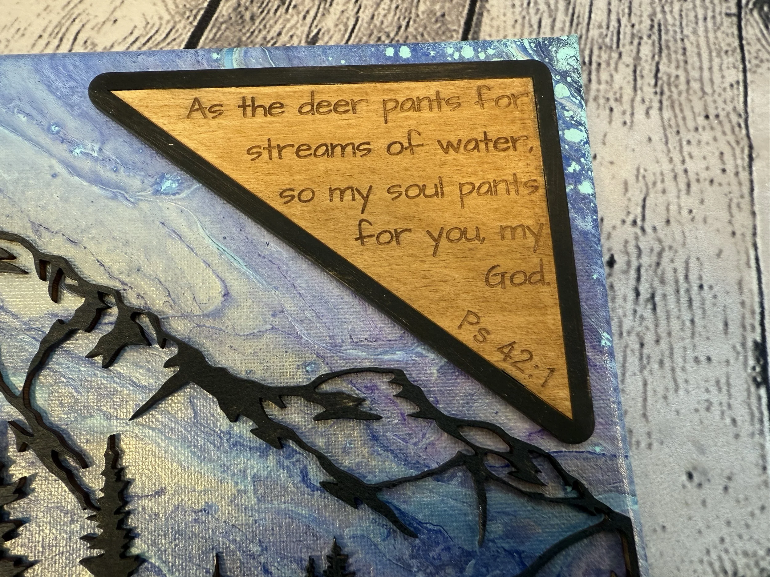 A wooded laser cut and engraved plaque with rope trim is engraved with a Cowboy’s Prayer. “Lord thank You for the open range, the strength to ride, and the heart to do right. Guide my hands, guard my heard. Keep my trail true till I ride home to You.” Amen.