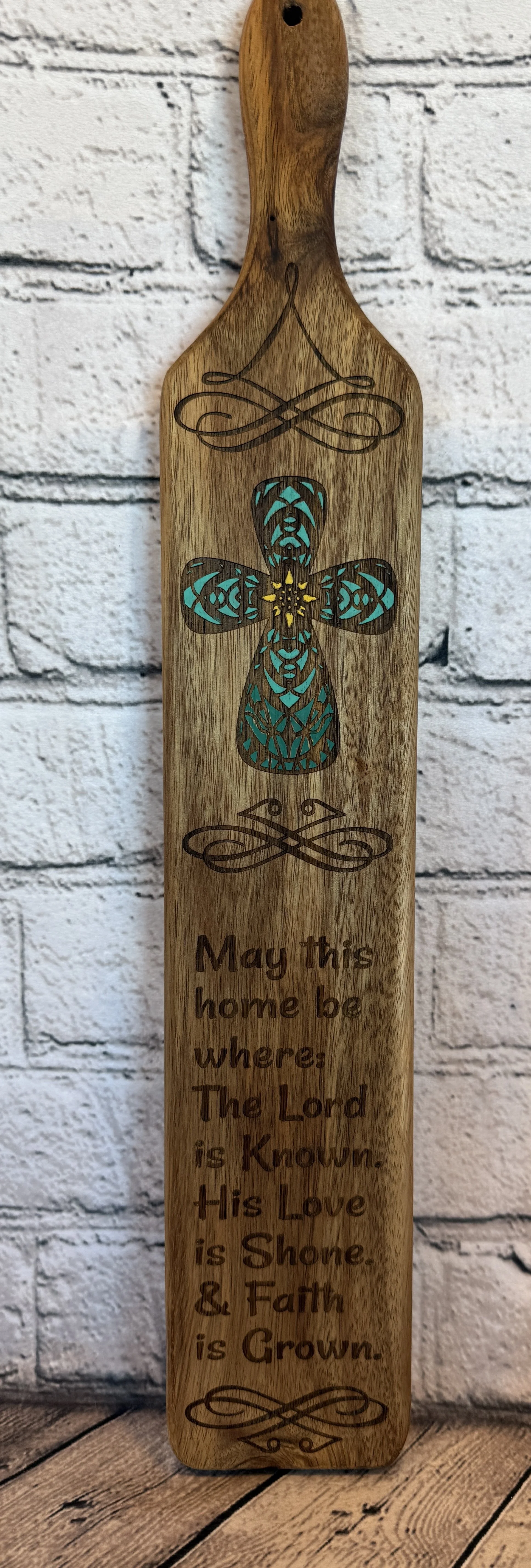 Our artistic journey began with fluid art in our garage. Next we added laser engraving, then we blend the two hobbies to create a unique mixed media piece. Additionally, some of the canvas frames are up-purposed to make tapestry weaves.